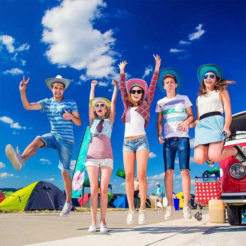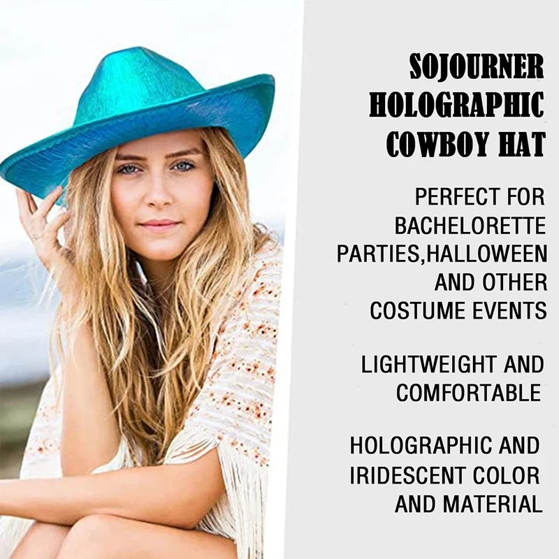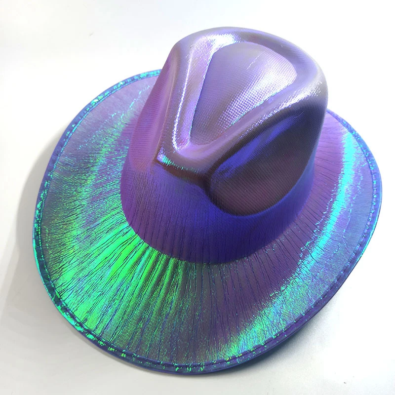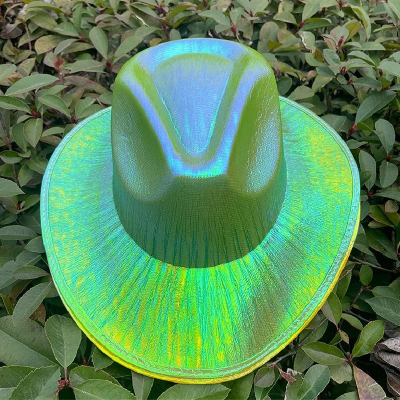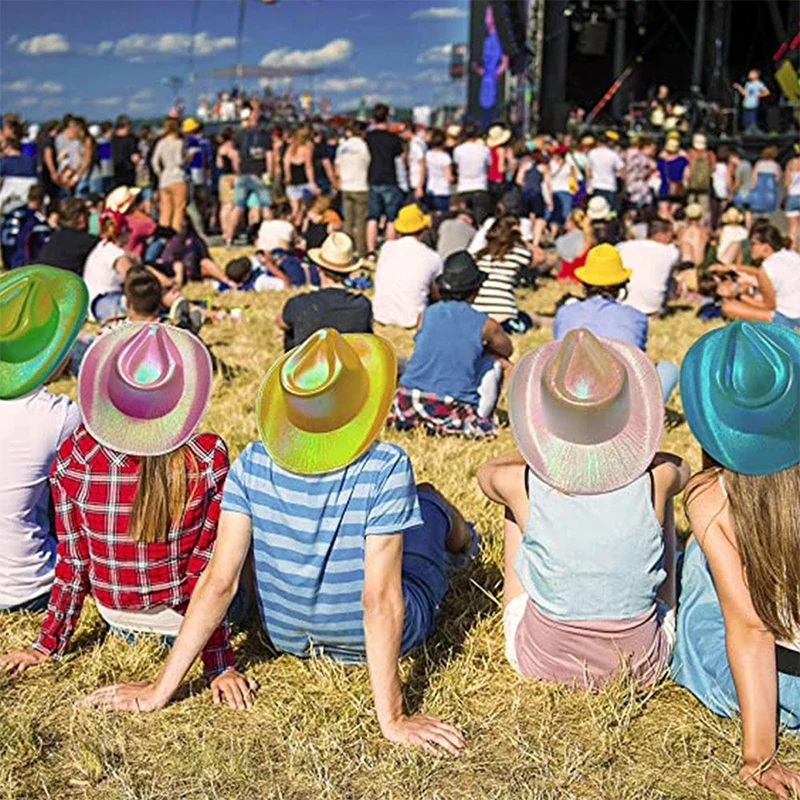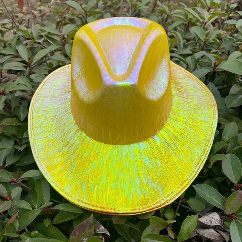 1PCS Women Wide Brim Caps Western Cowboy Hat Pearlescent Blinking Lights Cowgirl Hat For Party Holiday Costume