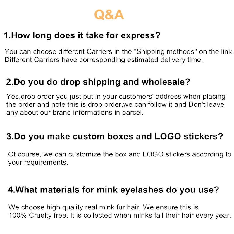 1. Product:1 pair Mink Lash ,62 styles for choice,with free paper box.