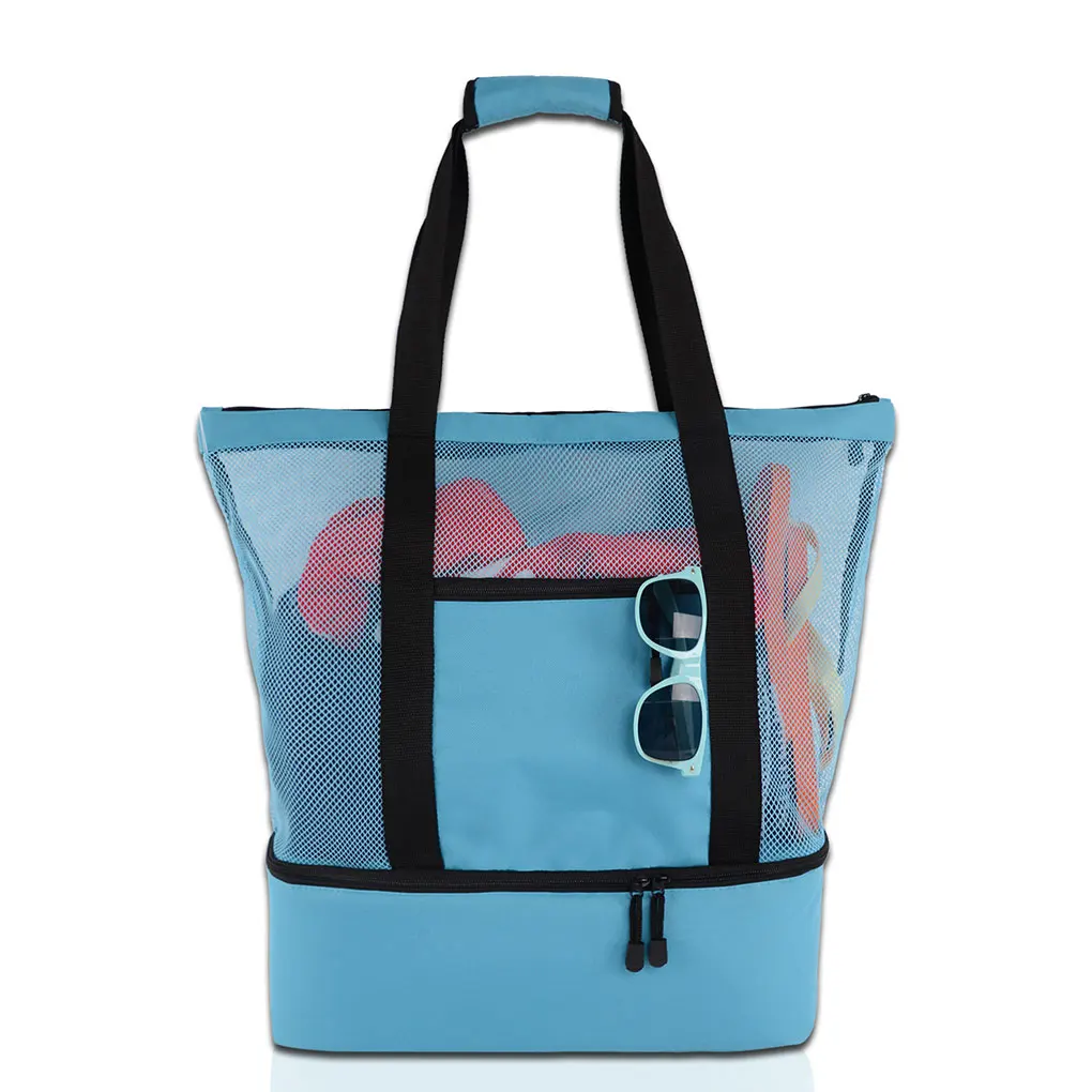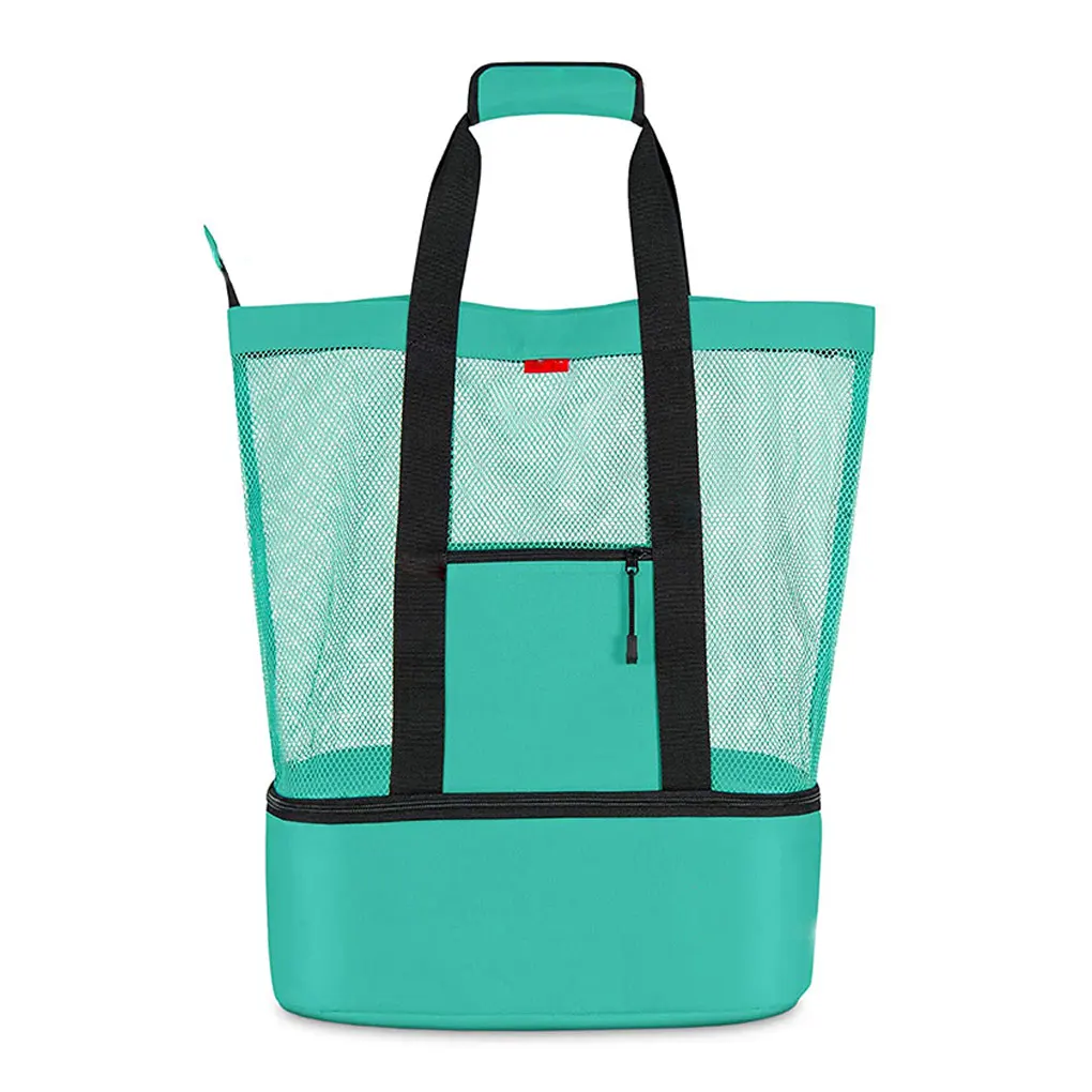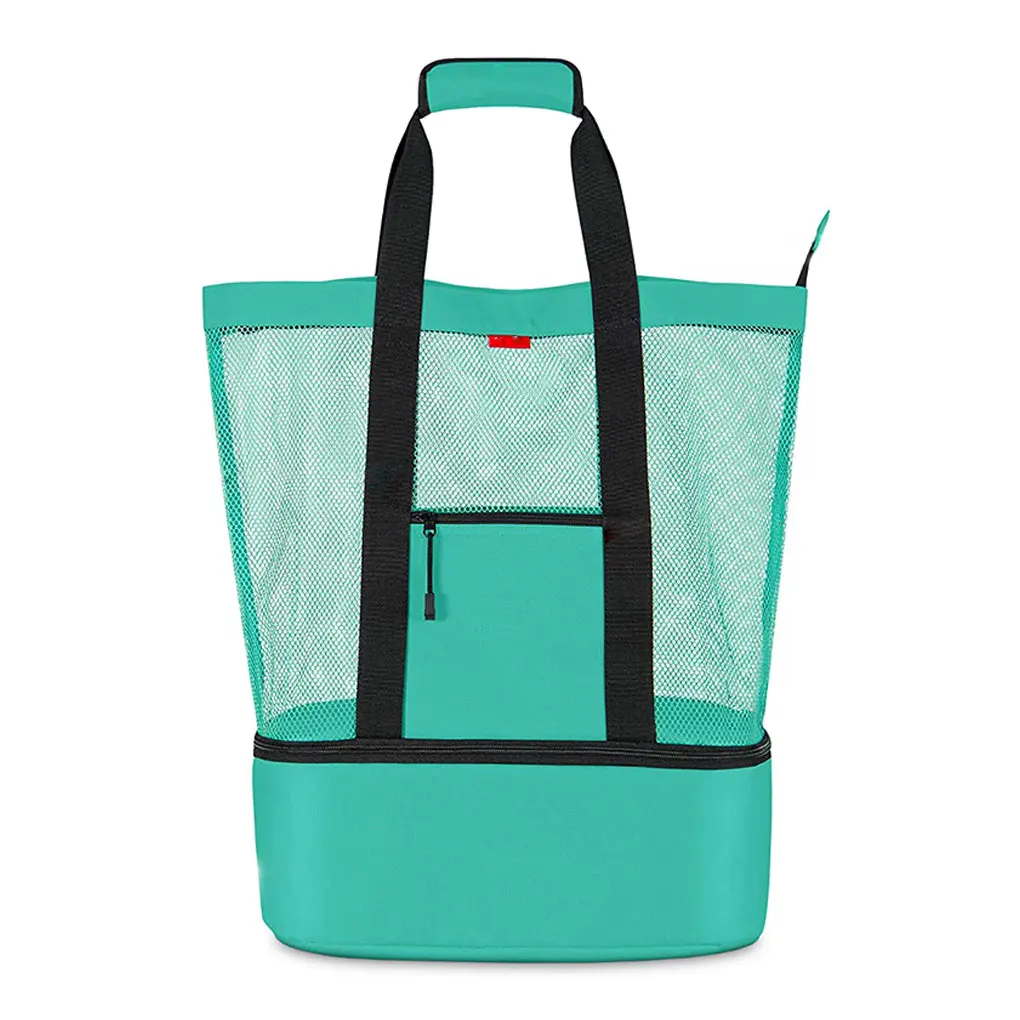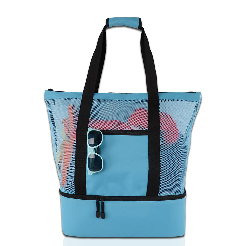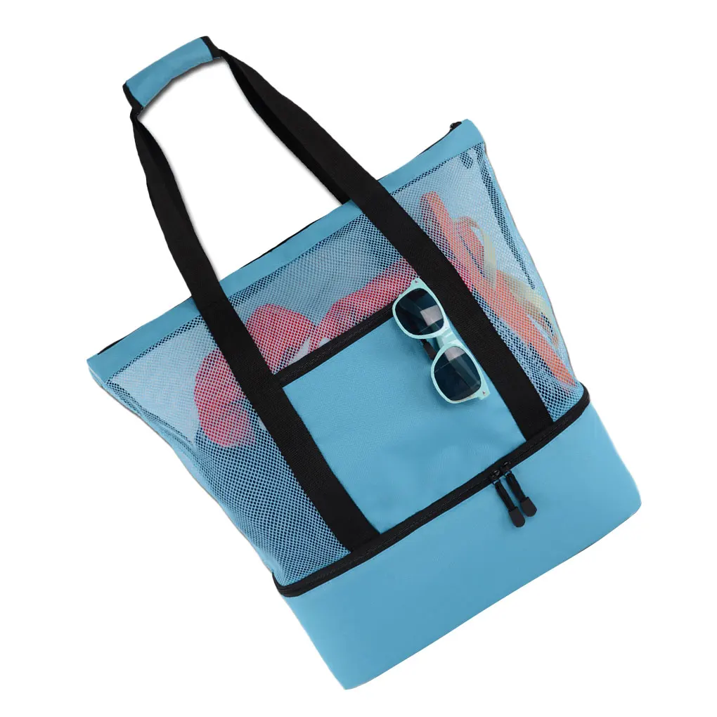 This mesh beach bag is designed with a cooler bag that can preserve the drink temperature for a long time.