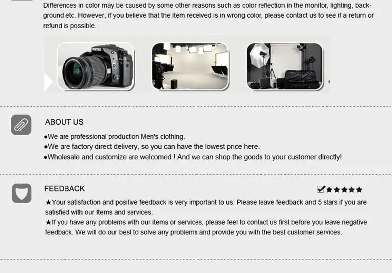 Note:1. Please leave a message with your weight (KG/LB) and height (CM/IN). We will help you to confirm the size. Thank you! we suggest you to choose 2 bigger size than usual. | |||||||||