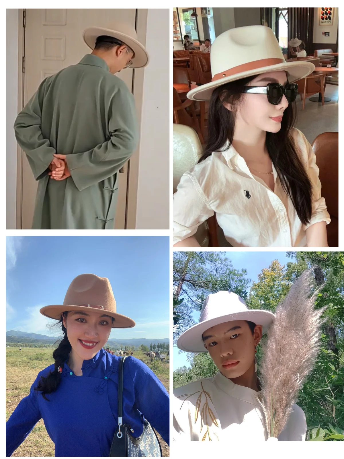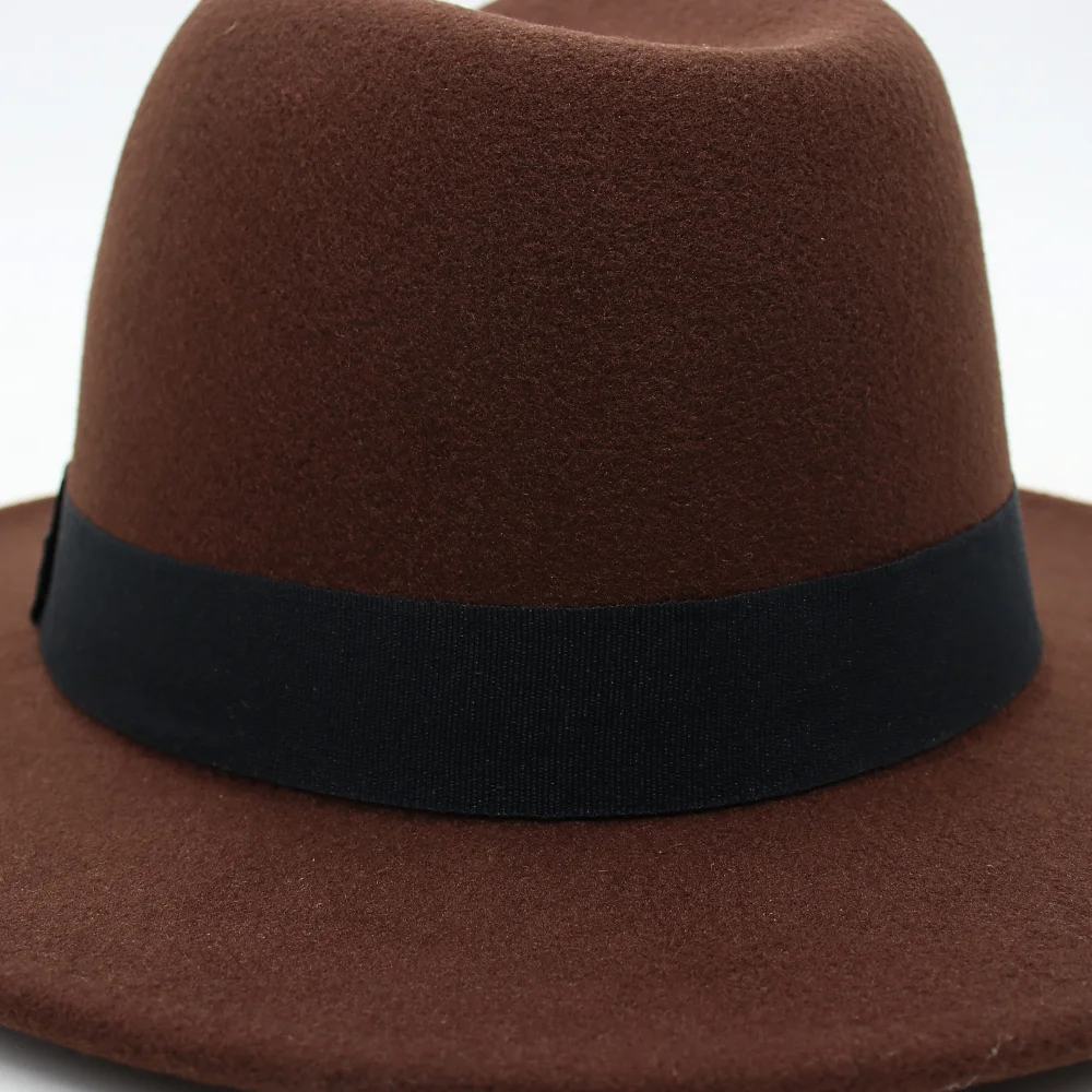 Classic Black Ribbon Women Fedora Hats Autumn Winter Gentleman Jazz Felt Hat For Men Retro Church Lady Flat Wide Brim Dress Hat
