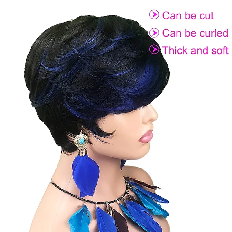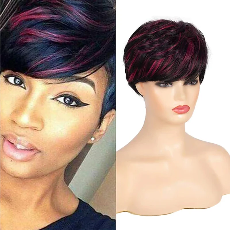 HAIRJOY Synthetic Hair  Wig Women Black  Brown  Short  Straight Afro Side Party Wigs for African American