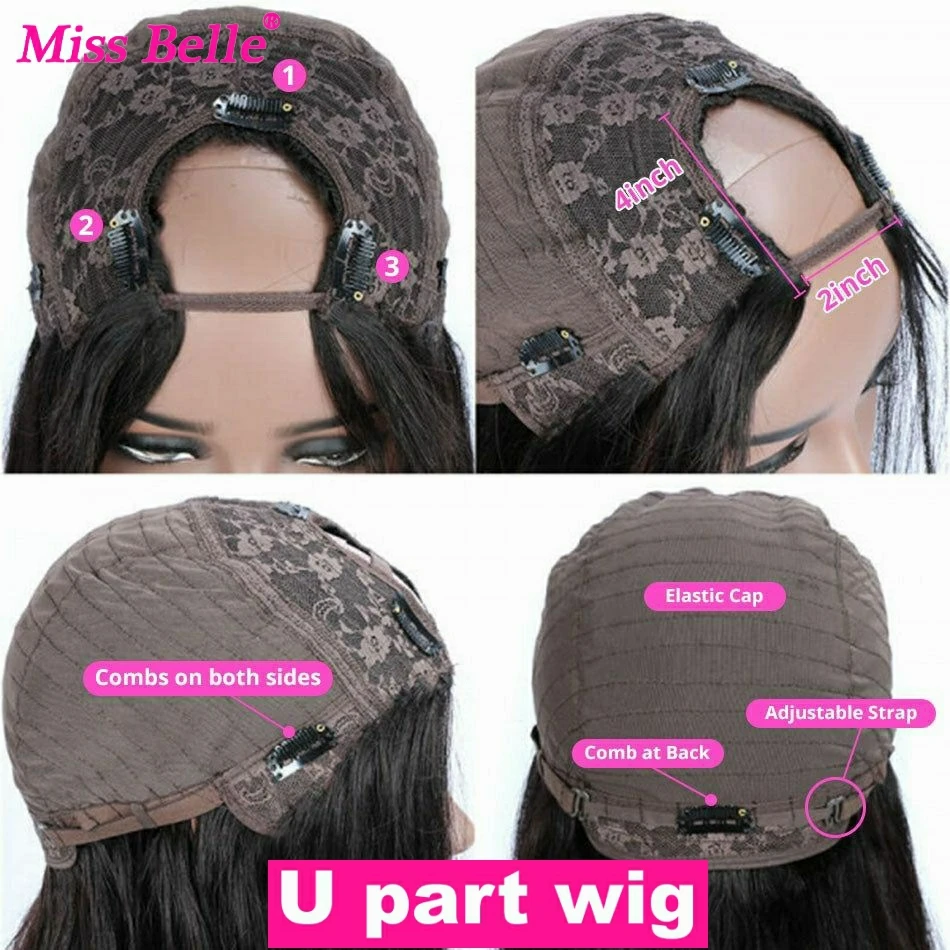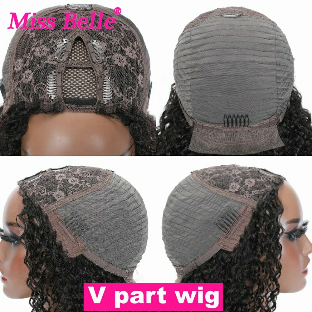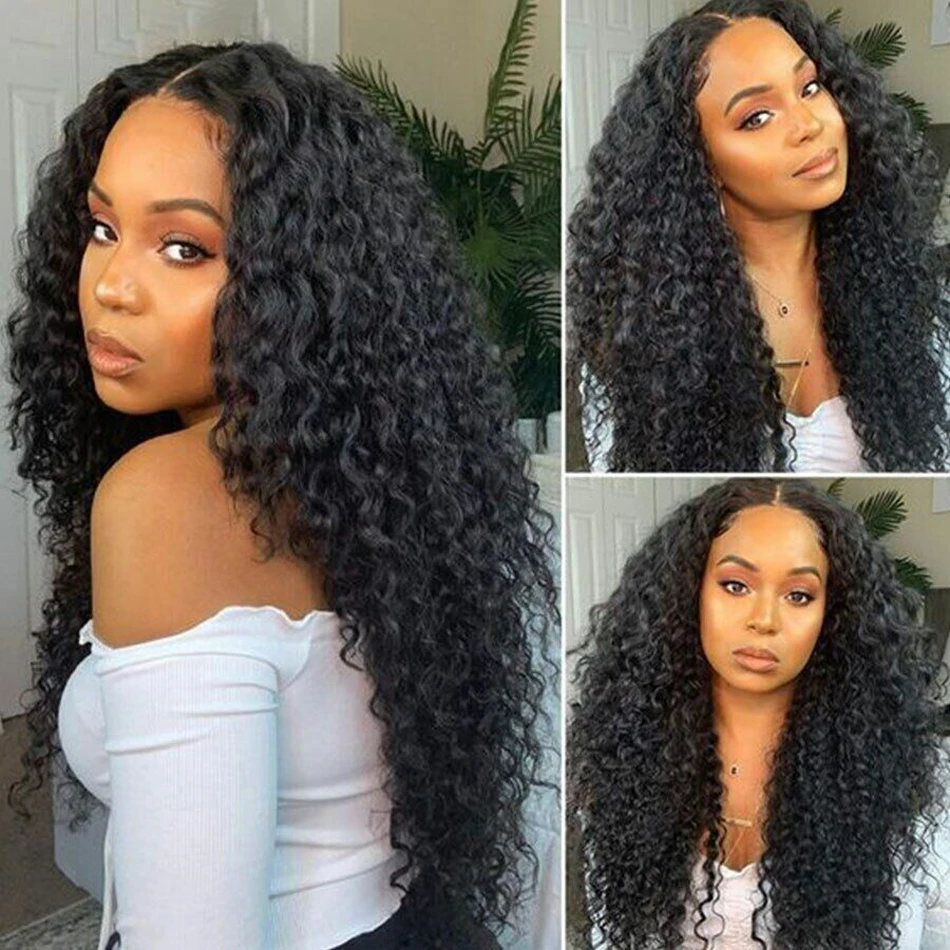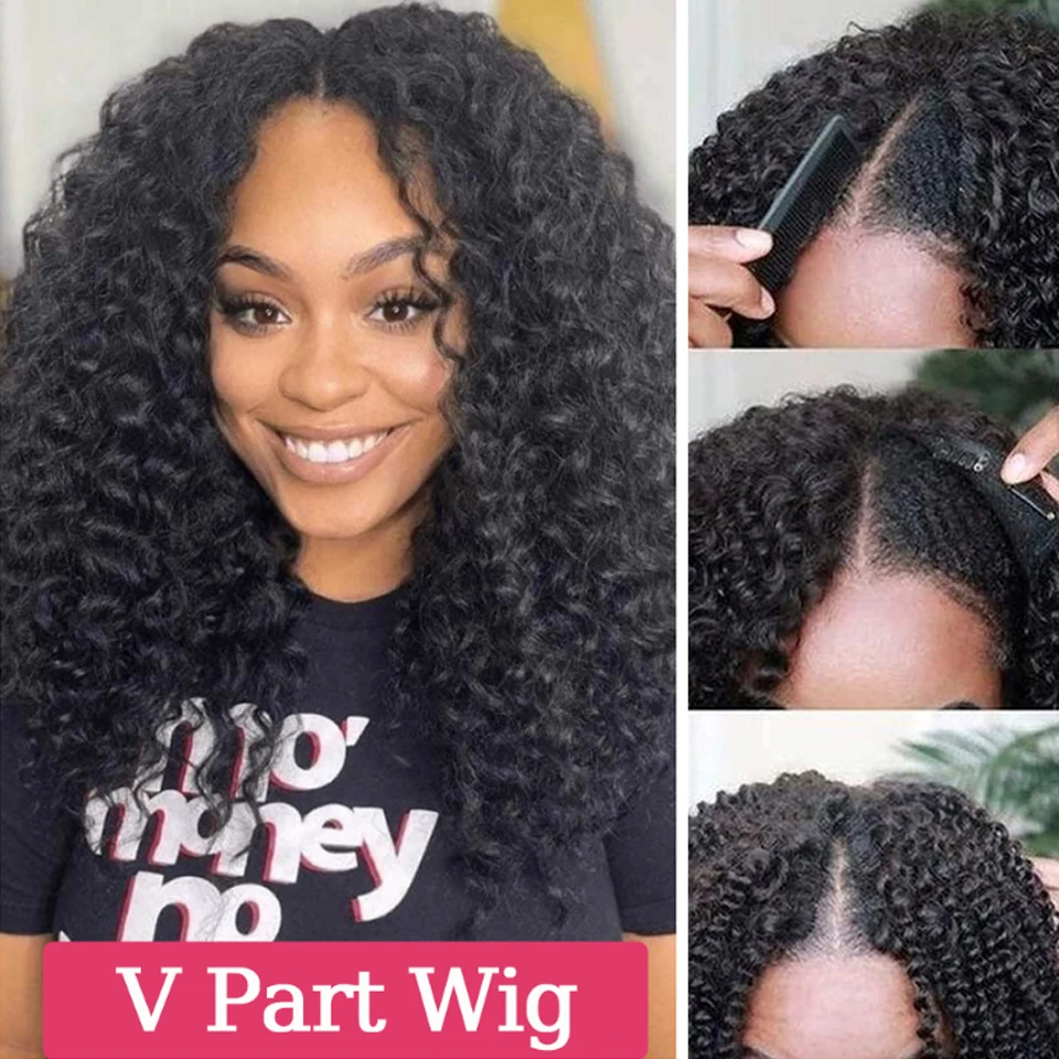 Kinky Curly U Part Human Hair Wig Brazilian Remy Hair U Part Wig Deep Wave None Lace Front Wig for Black Women Natural Color
