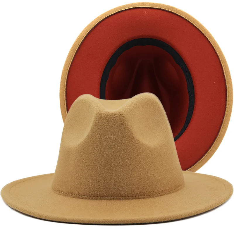 New Two toned fedoras hats for women caramel beige bottom felt hat jazz hat bowler hat perfomance hat men church hat 56-58CM