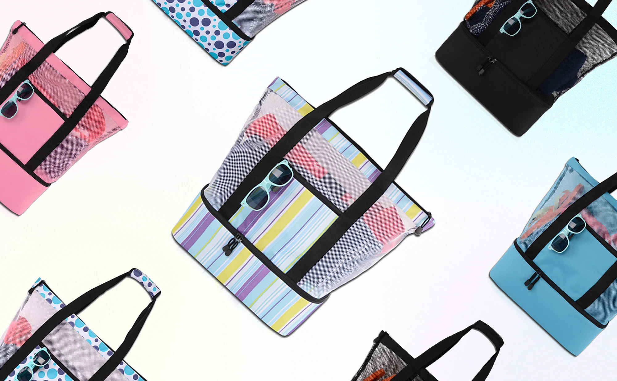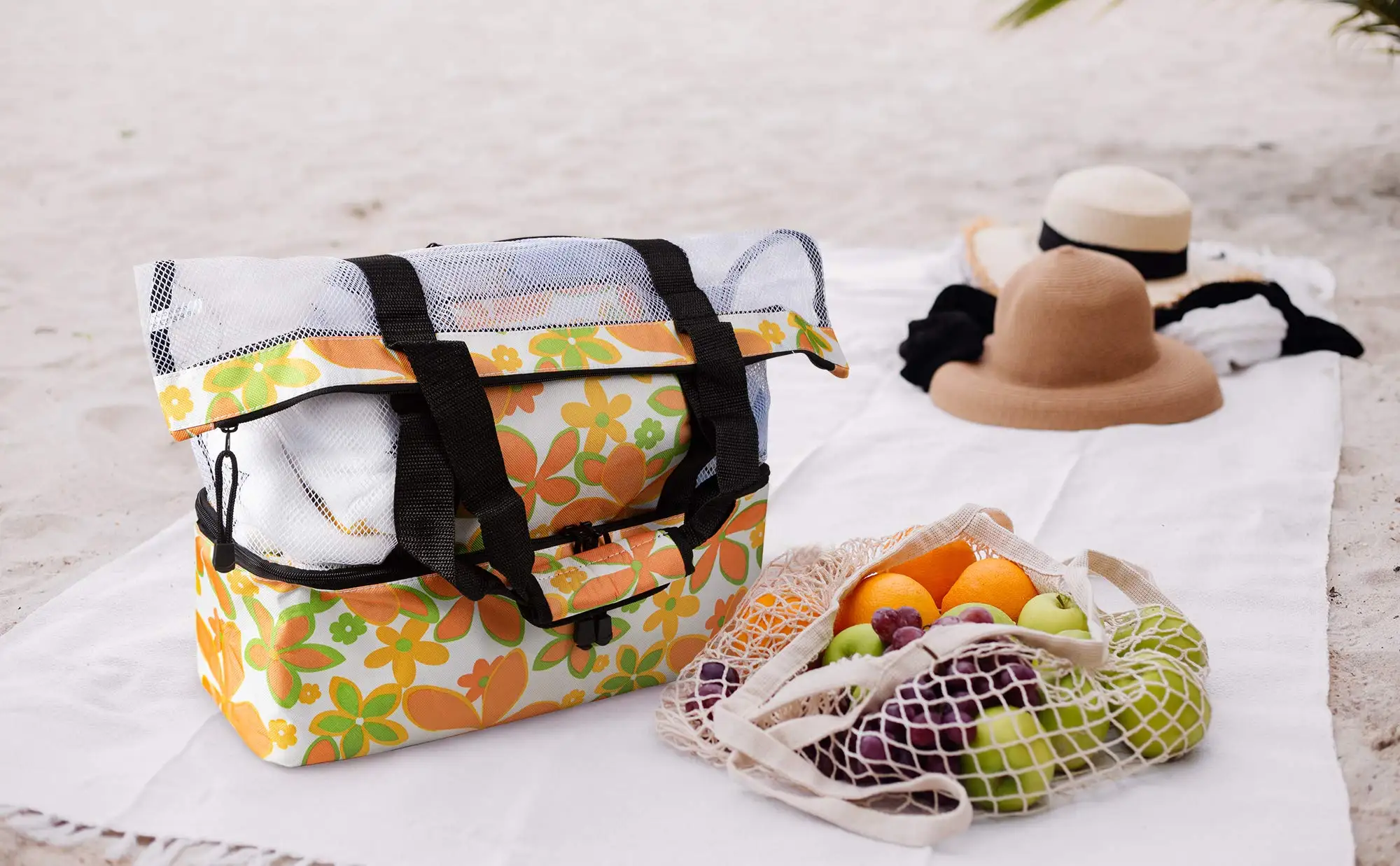 【BEST BEACH BAG】 Enjoy the convenience of this fashionable, lightweight, canvas and mesh zippered beach bag with an additional cooler bag compartment.