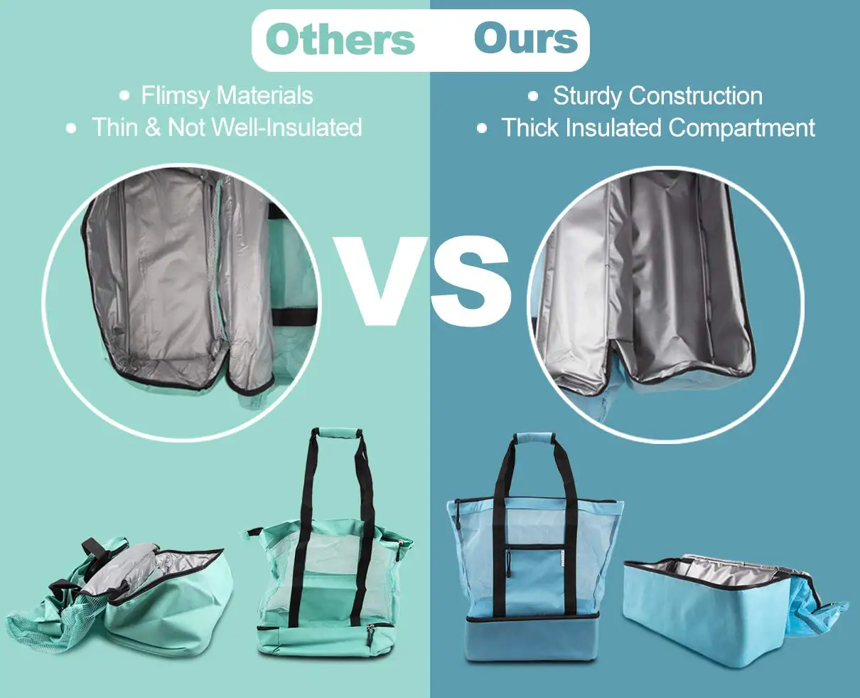 Tote Bag Mesh Beach Tote Bag with Insulated Cooler Compartment Extra Large Pool Picnic Cooler Bag with Zipper Closure for Travel