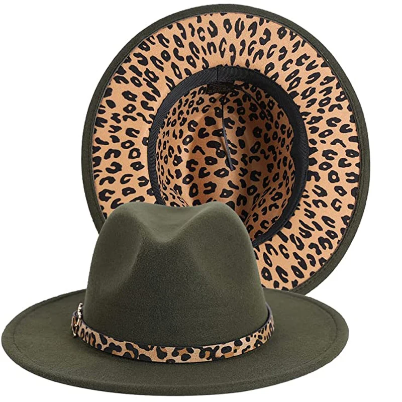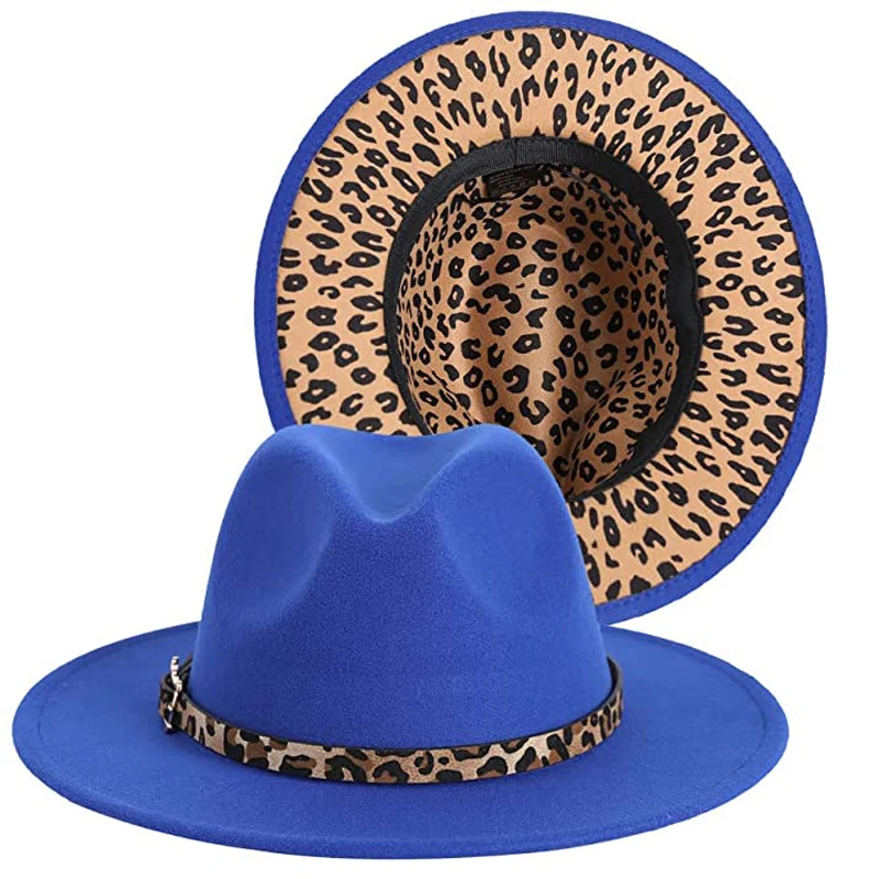 Two Tone Fedoras Jazz Hats Cowboy Hats for Women and Men Leopard Bottom Wool Felt Party Church Dresses Hat Wholesale шапка