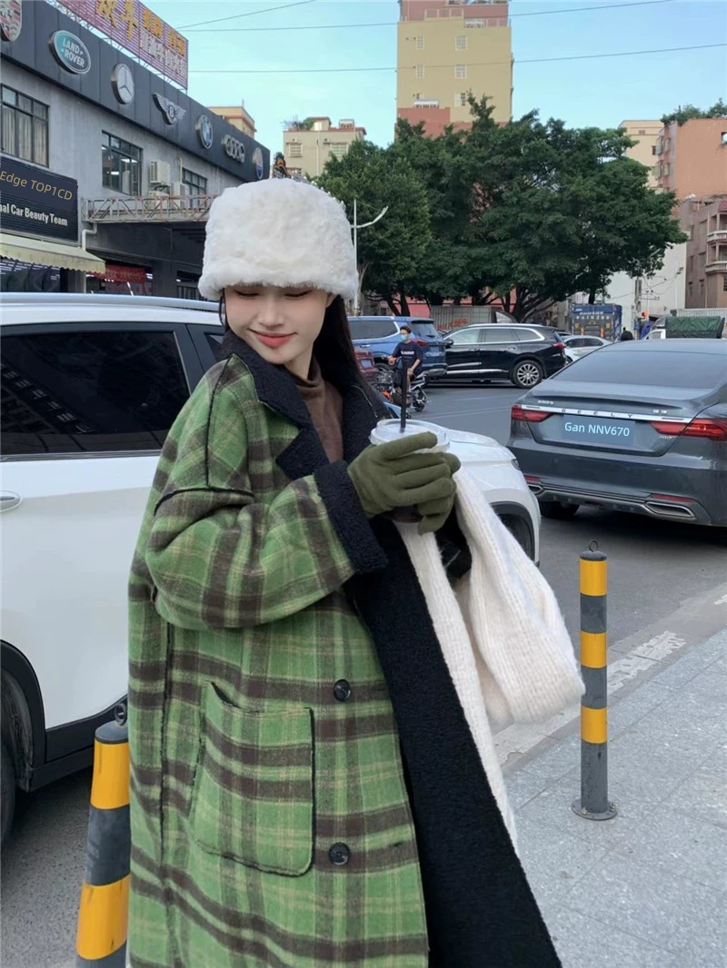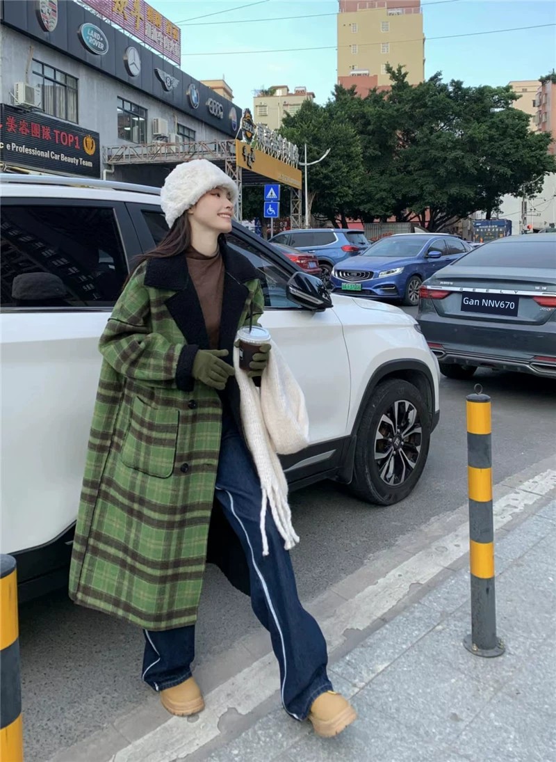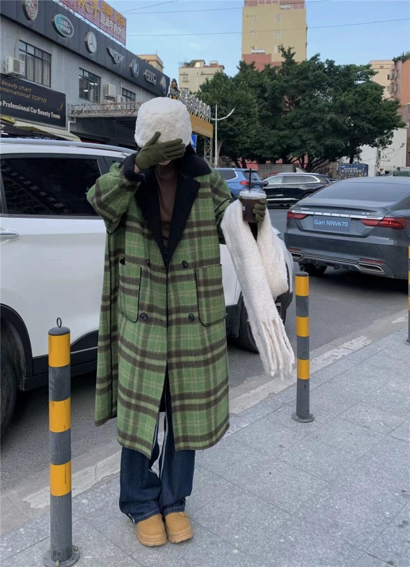 Women's Retro Plaid Oversize Woolen Coat